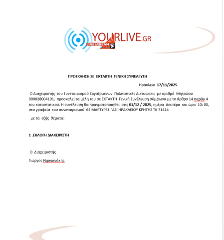 ΠΡΟΣΚΛΗΣΗ ΣΕ ΕΚΤΑΚΤΗ Γ.Σ